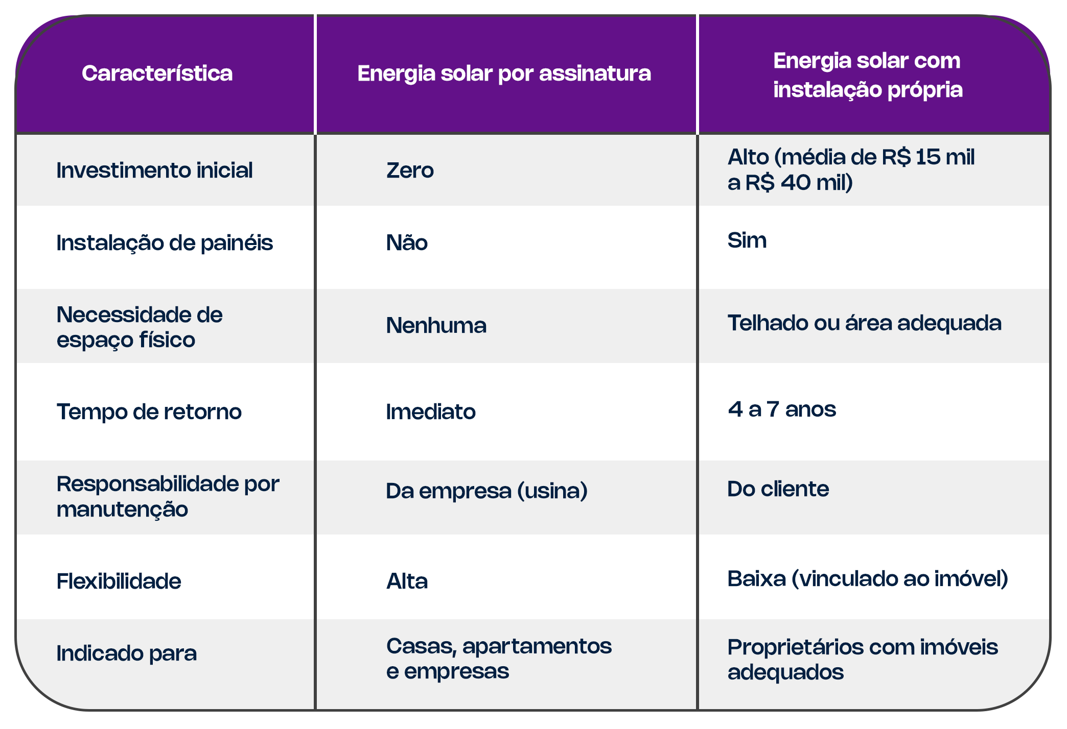 É comum que algumas pessoas confundam o modelo de assinatura com o tradicional sistema de geração própria. Mas as diferenças são significativas: